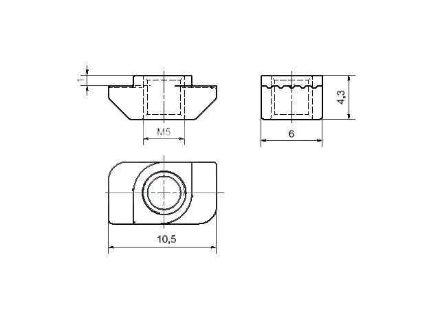 B6 horonyanya 11,5x5,7x4,2 mm, M5 6-os horonyhoz