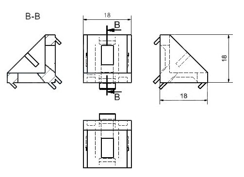 B6 sarokelem 20 x 20 mm, 6-os horonyhoz