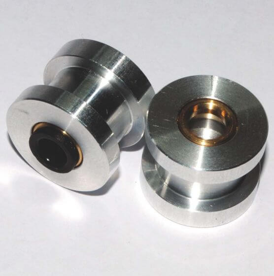 This is a neat little solution for quickly and easily converting a direct extruder that would normally accept a groovemount hotend into a bowden extruder. Simply mounts in like a HotEnd, but instead accepts our PTFE tubing securely in an embedded bowden coupler.