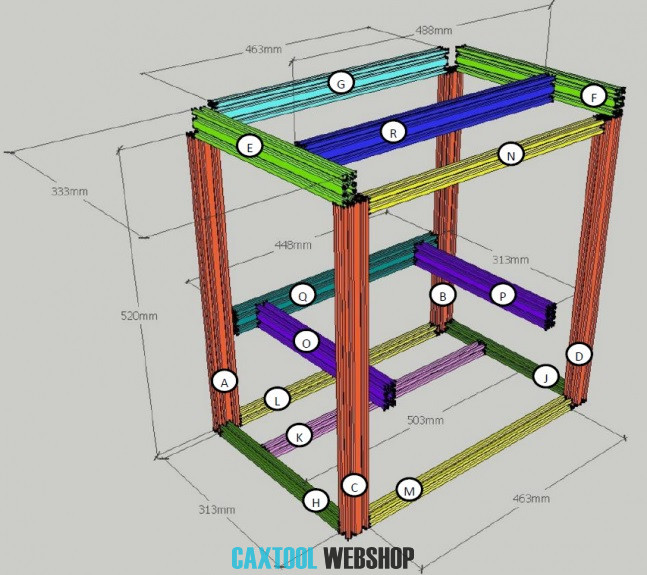 Alumínium váz készlett 300x300mm-es asztalméretű D-Bot építéséhez.
