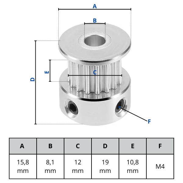 GT2-10 mm T20 bordáskerék 8 mm furat