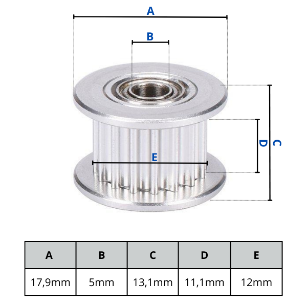 GT2-10mm T20 szíjfeszítő idler 5mm furat