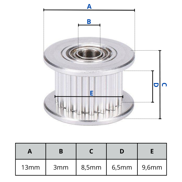 GT2-6mm T16 szíjfeszítő idler 3mm furat