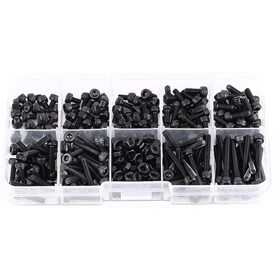 Hengeres fejű belső kulcsnyílású csavar készlet 300 db DIN 912 12.9 DSB fekete M3