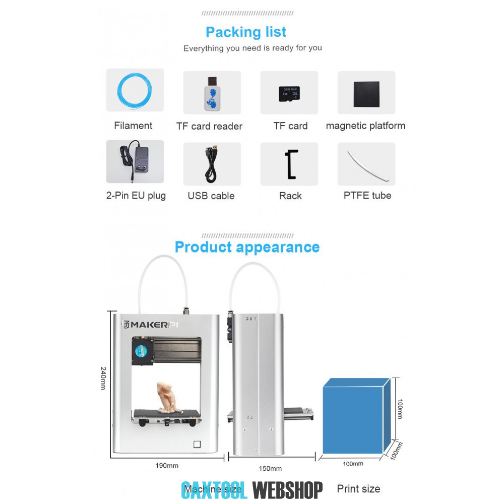 Nyomtatási térfogat: 100x100x100 mm