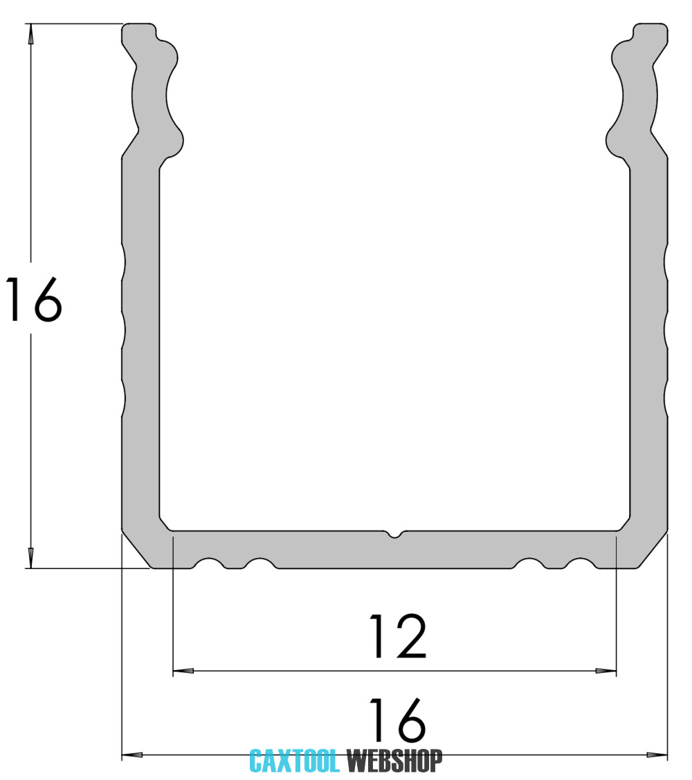 GLALU felületre szerelhető eloxált alumínium LED profil 16x16mm 3000mm fekete