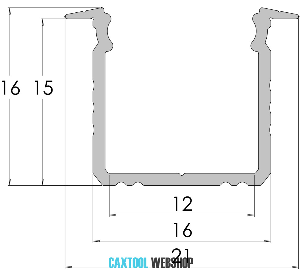 GLALU süllyeszthető eloxált alumínium LED profil 15x16mm 4150mm ezüst