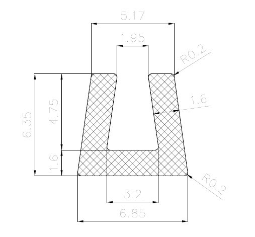Szilikon élvédő "U" profil 6,85x3,2x6,35 mm szürke