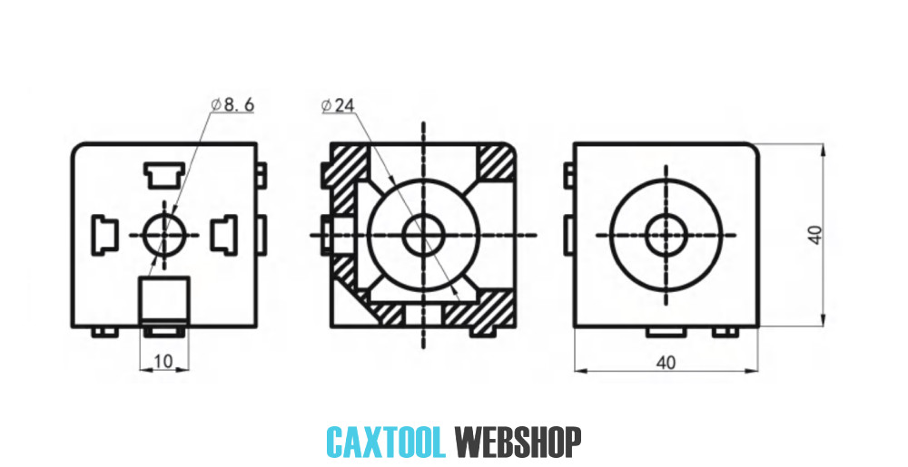 B10 kockaösszekötő 40x40 mm, 3D, 10-es horonyhoz, szettben
