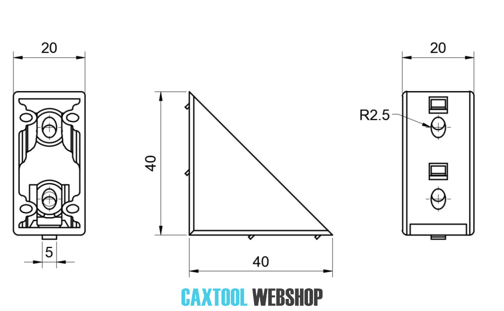 I5 sarokelem 20 x 40 mm, 5-ös horonyhoz