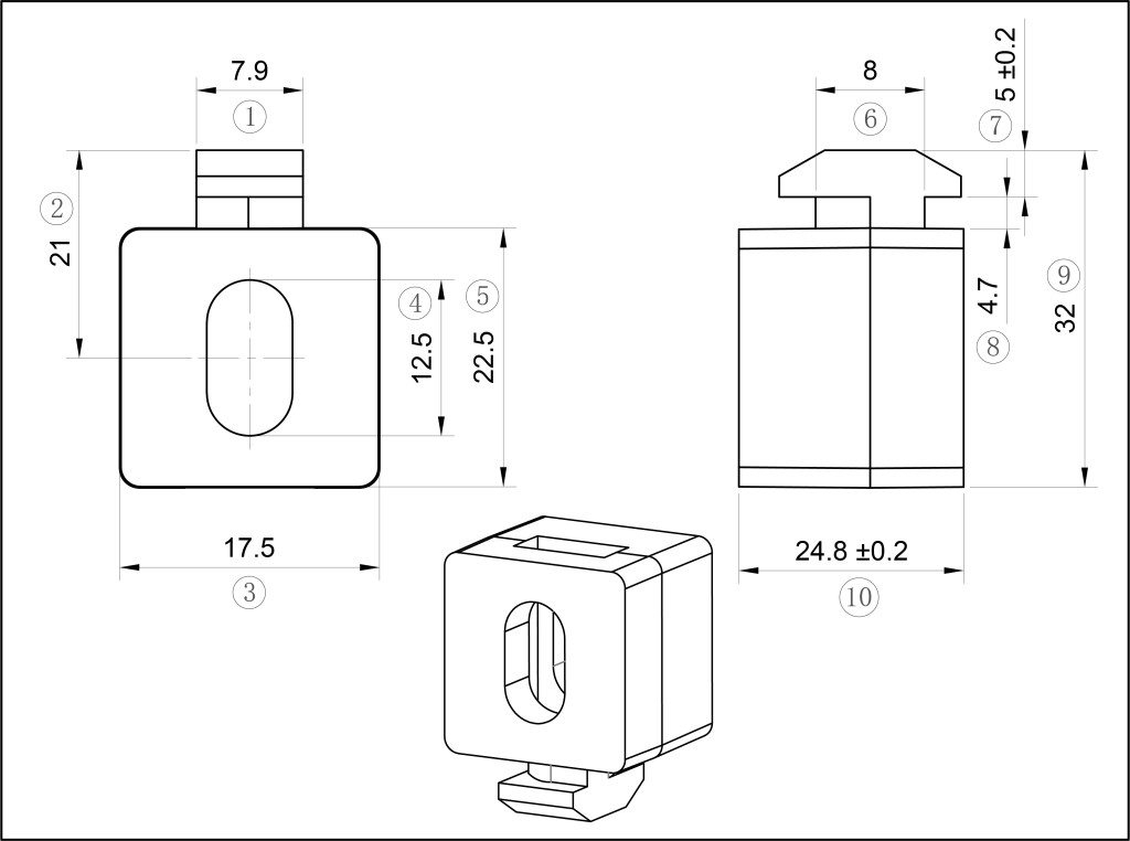 A Multiblokkhoz sík lapokat (üveg, műanyag..) lehet rögzíteni. A Multiblokk a horonyba helyezve, 90 fokkal elforgatva rögzíthető. A komponensen belül egy négyszögletes M6 anyához rögzíthető a kívánt elem