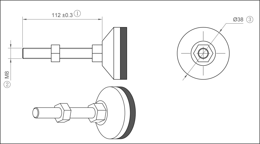 A talaj egyenetlenségeinek kiegyenlítéséhez kialakított állítható magasságú láb. Profil megmunkálás: menetfúrás a központi lyukba. A láb biztonságos ésstabil rögzítéséhez szükség lehet talplemez alkalmazására