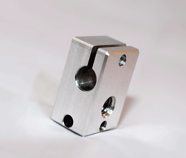 A replacement aluminium V6 heater block, suitable for E3D cartridge-style temperature sensors.